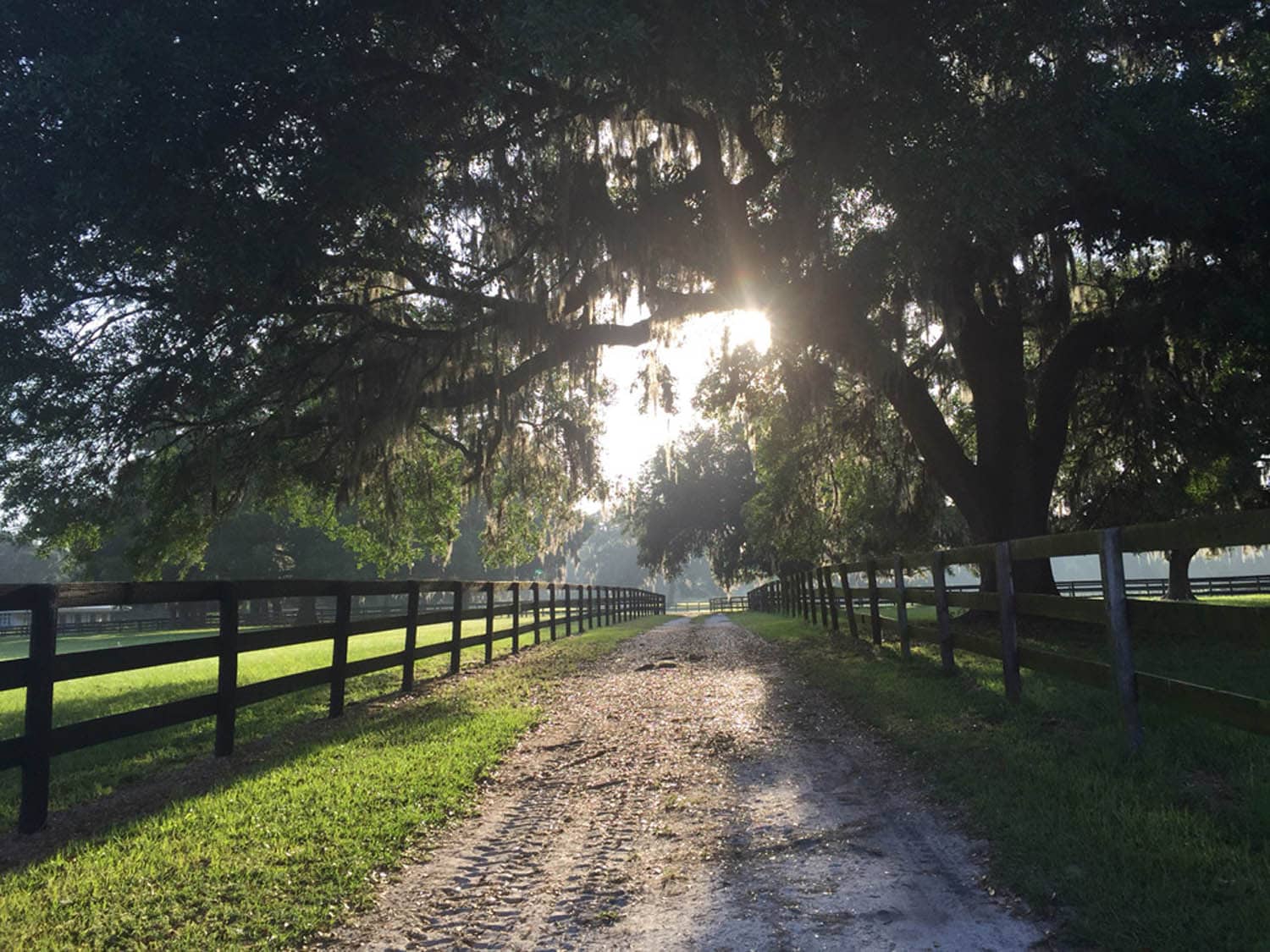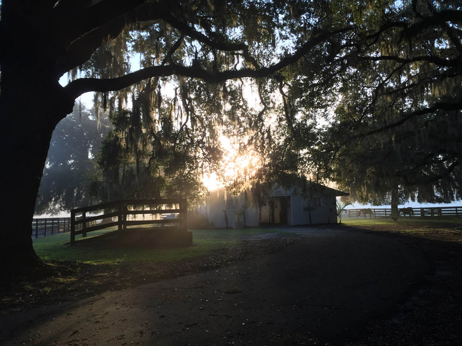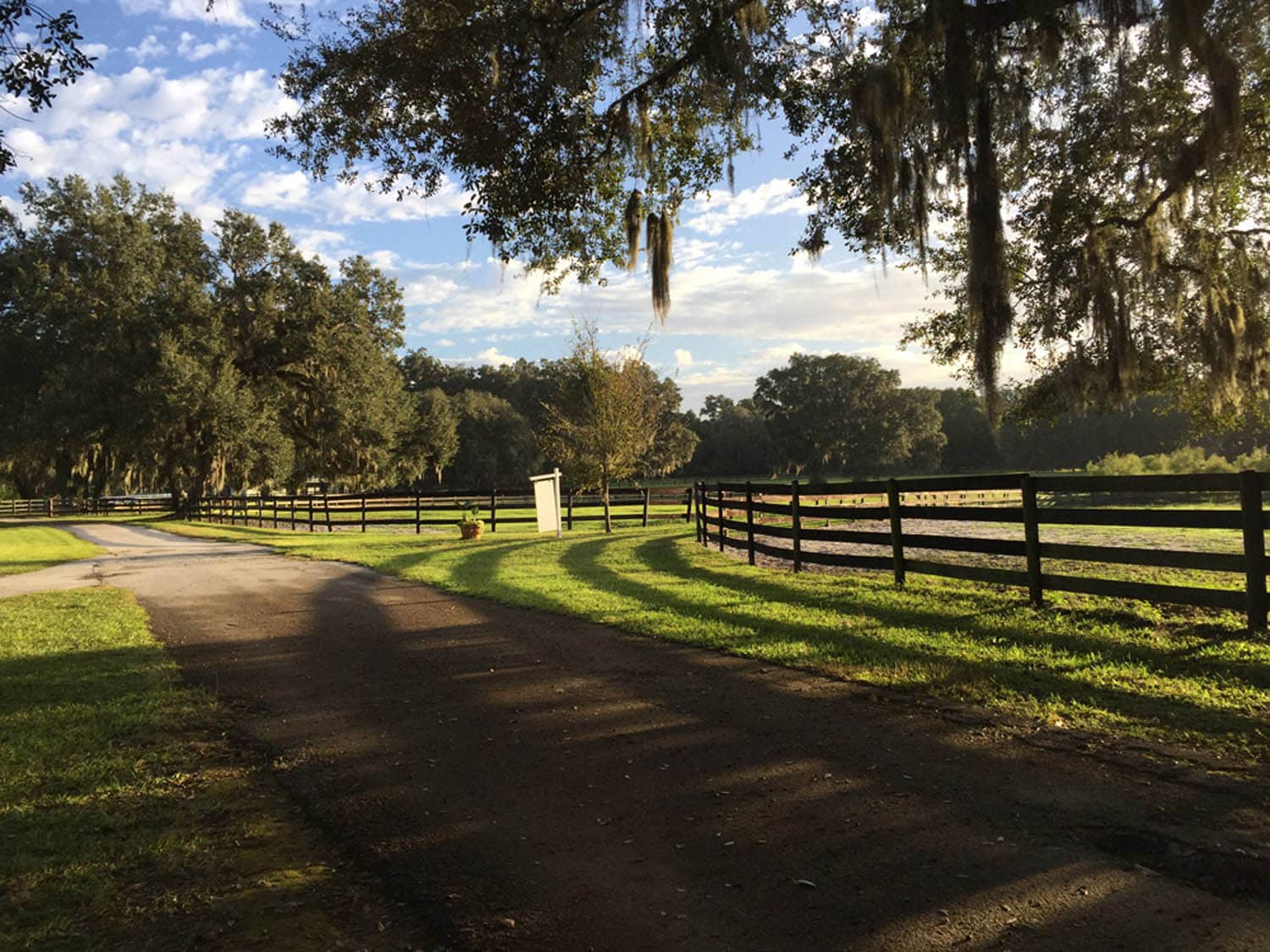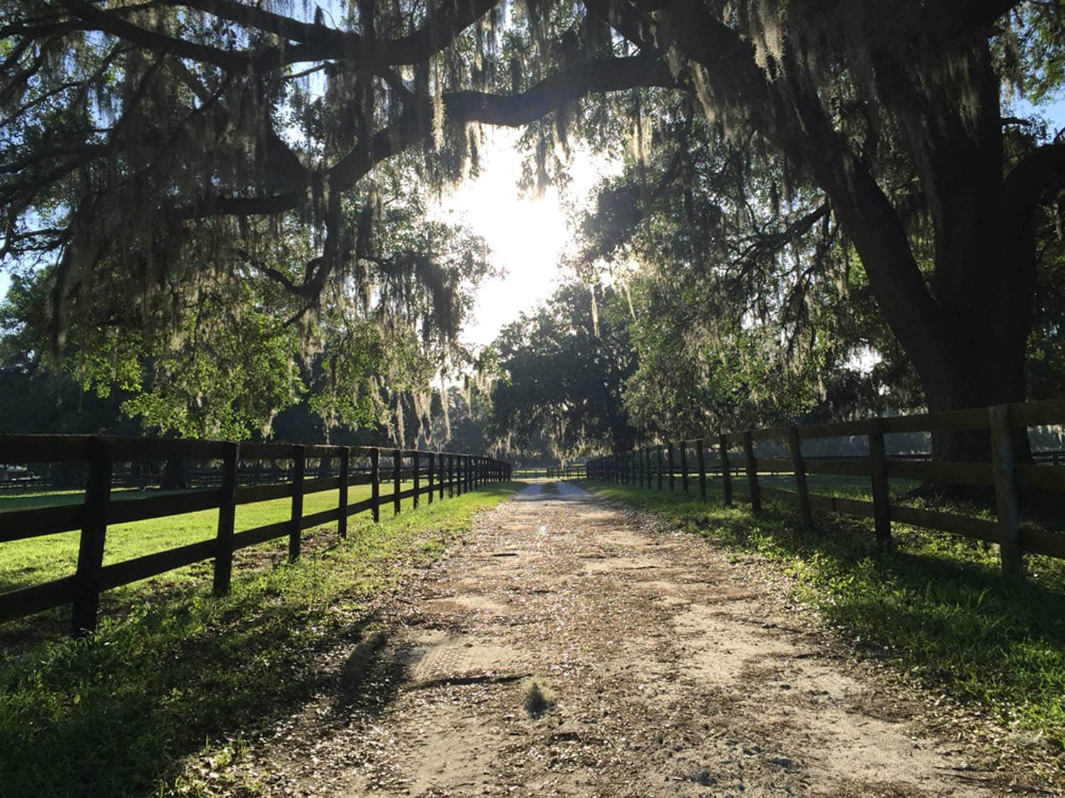 Conveniently located just north of Ocala and south of Gainesville, in beautiful, temperate North Central Florida’s small town of Reddick, Bobbin Hollow’s new location is a calming destiny for clients and a heaven for their horses. Just minutes from Interstate 75 and literally across the street from the internationally known Ocala Jockey Club, there is shopping, camping, dining and hotels just 20 minutes from the farm in any direction.