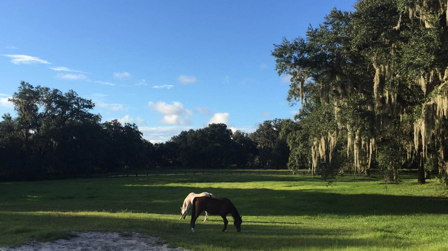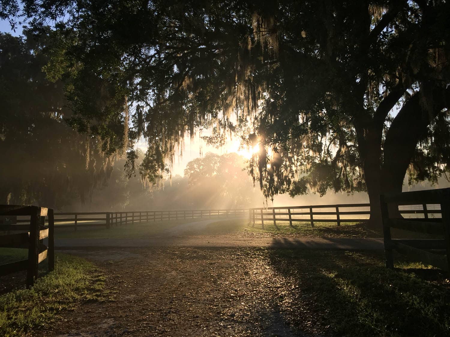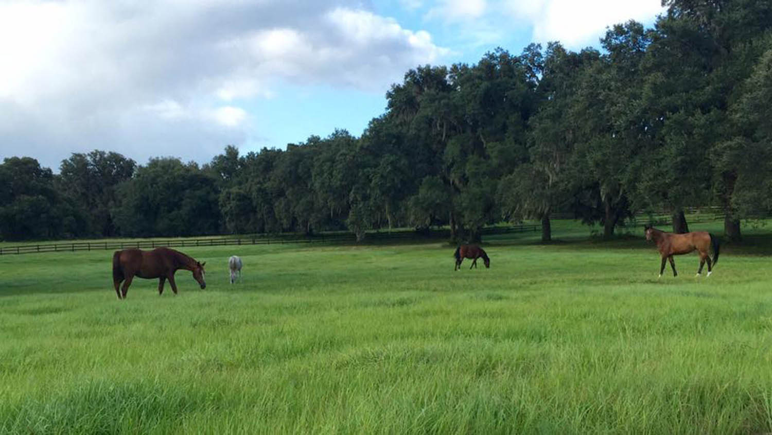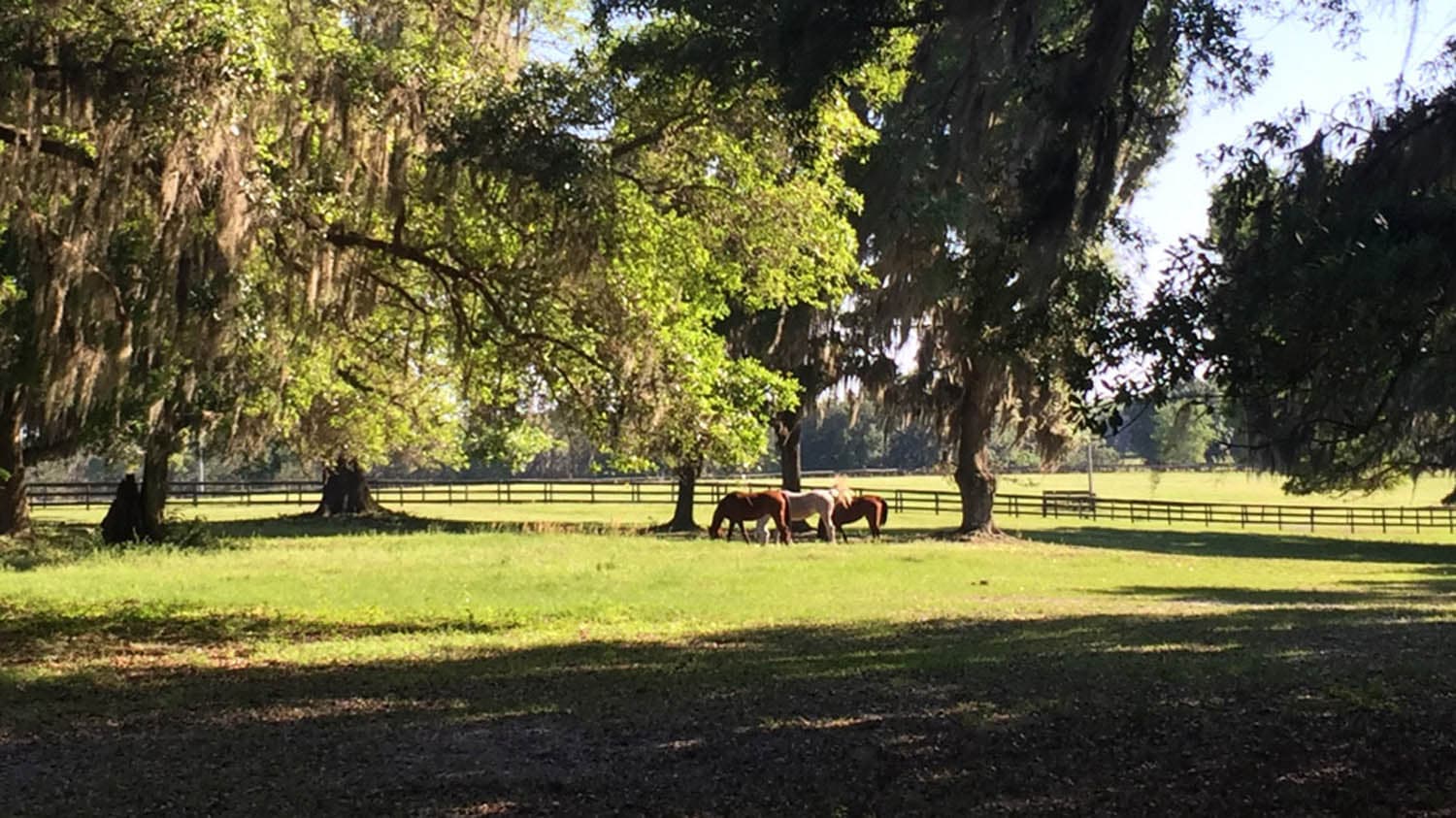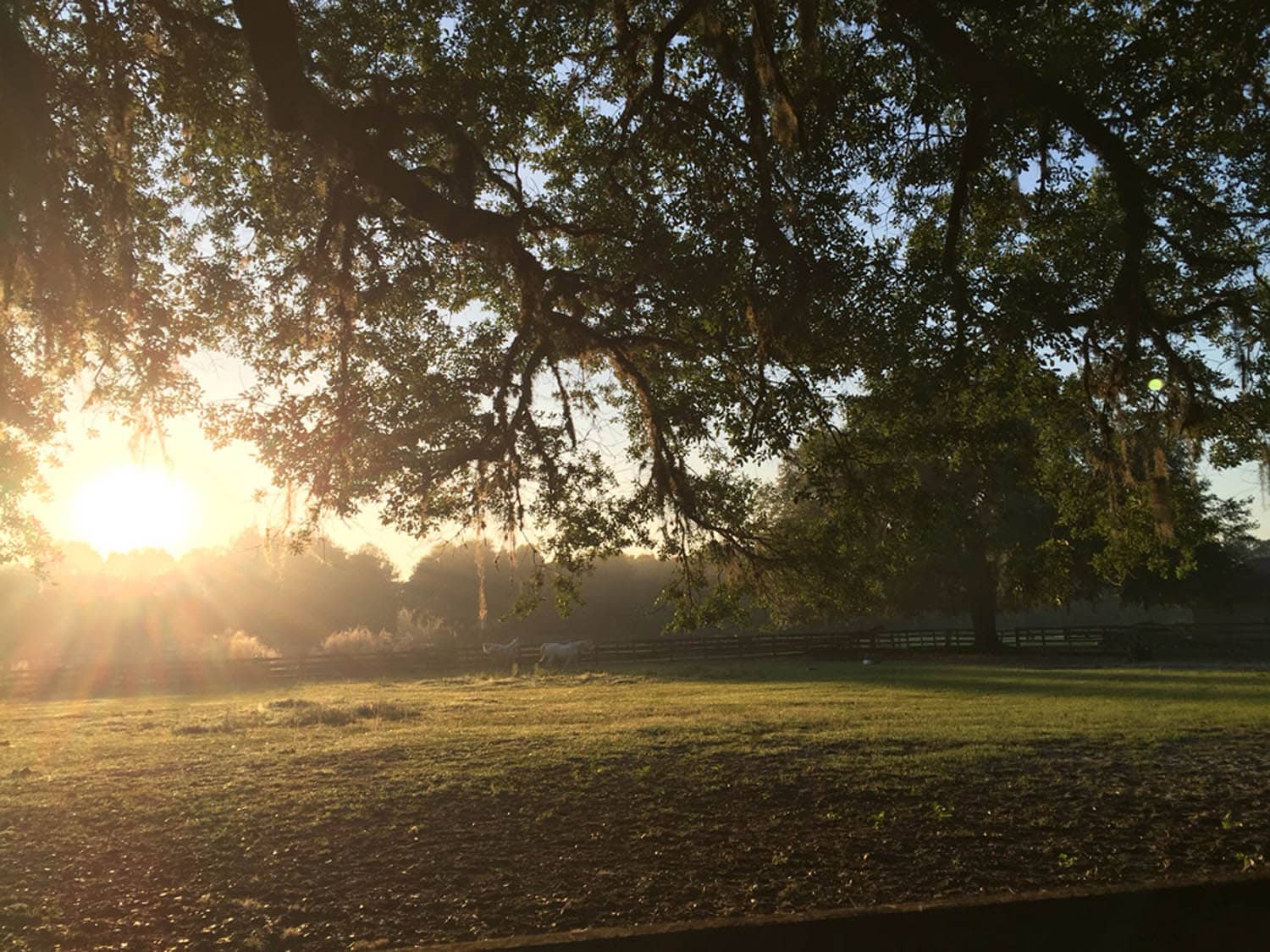 Conveniently located just north of Ocala and south of Gainesville, in beautiful, temperate North Central Florida’s small town of Reddick, Bobbin Hollow’s new location is a calming destiny for clients and a heaven for their horses. Just minutes from Interstate 75 and literally across the street from the internationally known Ocala Jockey Club, there is shopping, camping, dining and hotels just 20 minutes from the farm in any direction.