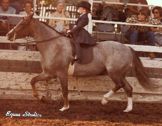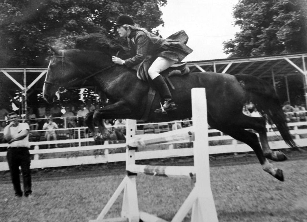 Lark enjoyed an idyllic childhood, surrounded with the students of Camp Bobbin Hollow and provided with endless opportunities to show exceptional horses. One of Lark’s earliest memories is of her father allowing her to take a victory pass off the line at the New England Regional Show after winning her Leadline class. While she racked up countless victories during her junior exhibitor years with her Morgans, her first Louisville accomplishment came with her three-gaited Saddlebred, CH Private Eyes, a Reserve World’s Champion in 1983.