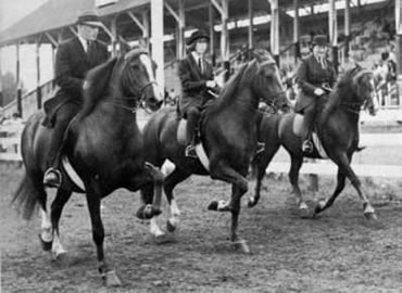 Orcland Donanna with Chip Orcutt up, Orcland Darling with Henry Orcutt up, UNH Gayman with Mrs Ruth Orcutt up. October, 1964
